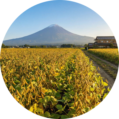 We start with 100% natural, non-GMO soybeans, carefully cultivated at the foot of Mt. Fuji. Grown in fertile soil with sustainable methods, free from pesticides and chemicals, these soybeans are nurtured with care to promote the growth of beneficial bacteria.